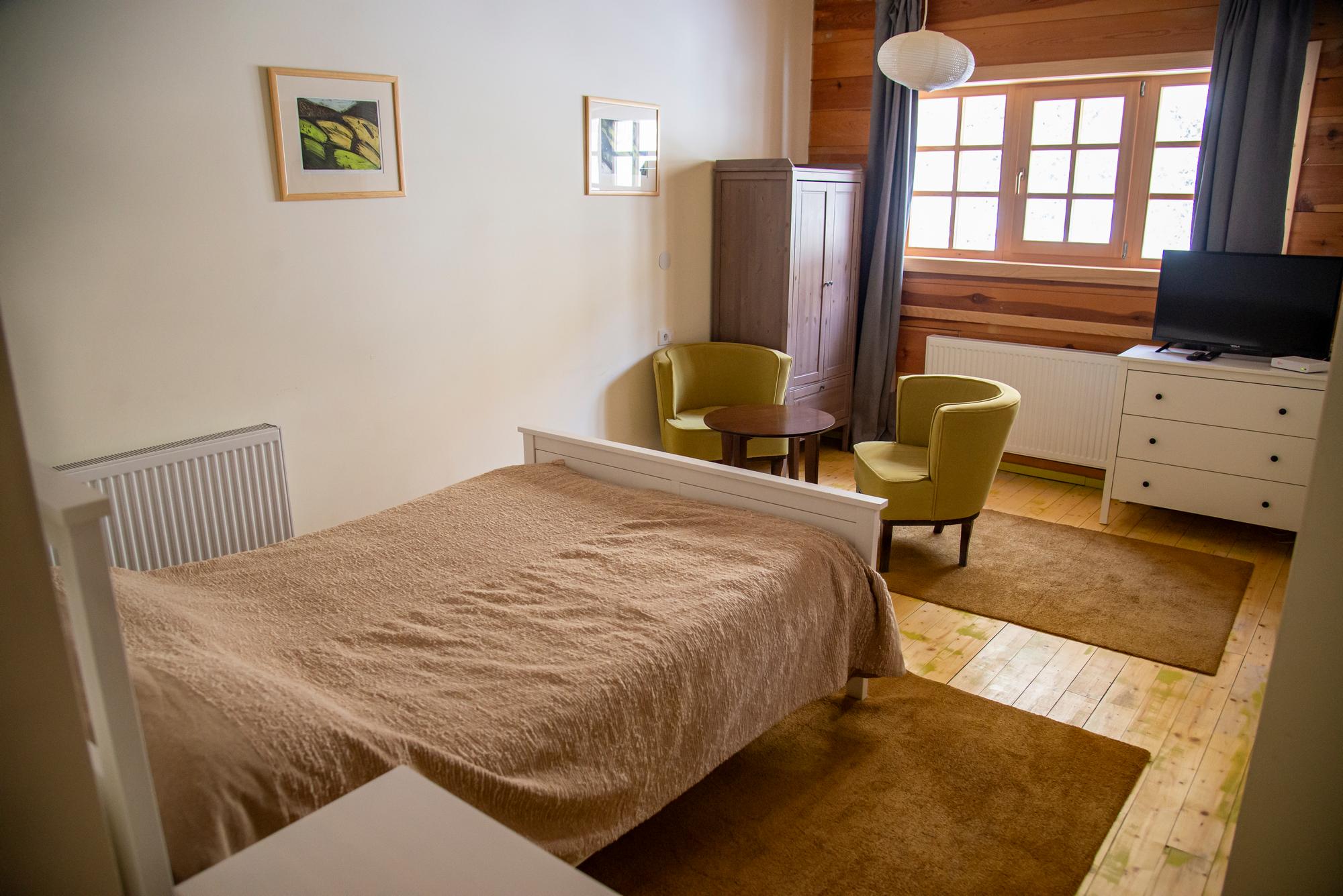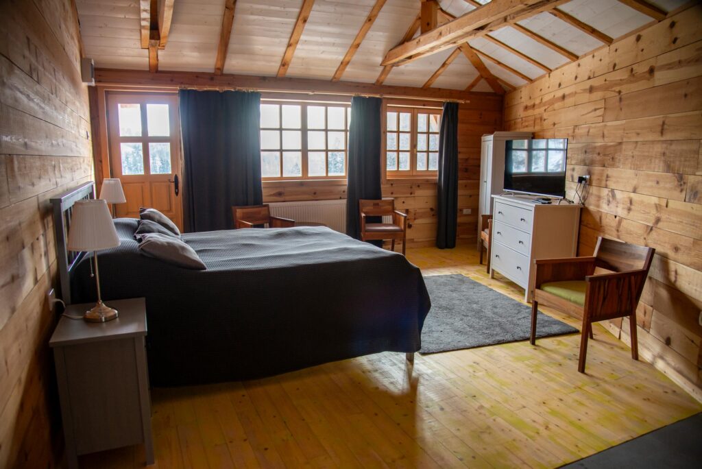 Пројектовано је у свему тако да задовољи све атрибуте заиста планинског дома у чијем средишту увек гори ватра у камину, а 32 топле, ”ушушкане” собе у дрвету, са укупно 50 лежаја, куда год да имеју окренуте прозоре – гледају на стазе и скијаше…